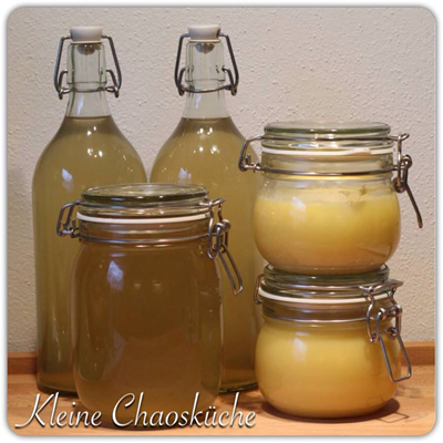 Die flüssige Butter dann durch ein mit einem Mulltuch ausgelegtes Sieb gießen und danach in saubere Gläser füllen.