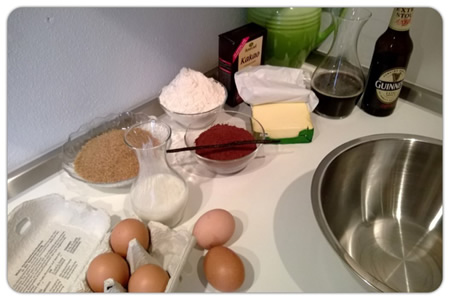 Die Guinnessmischung dazu geben und mit dem Mixer zu einem geschmeidigen Teig verrühren. Der Teig bleibt dabei recht flüssig.