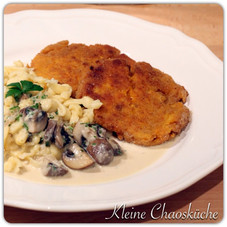 Als Beilage gab es bei uns Spätzle und eine Pilz-Rahm-Sauce.