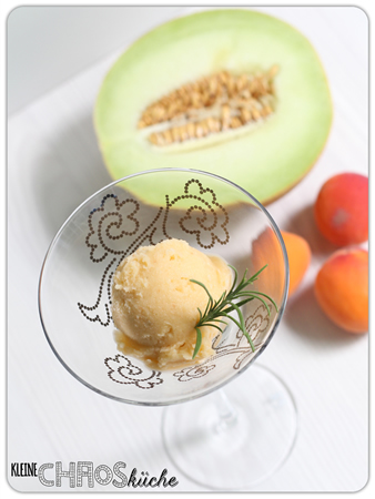 Melonen Aprikosen Sorbet mit einem Hauch Rosmarin.