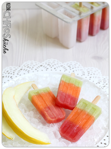 Und wenn Ihr so wie ich nach all den Rezepten noch ganz viel Melone übrig habt, dann macht doch einfach noch ein leckeres Eis am Stiel draus! :-)