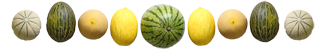 Diese fünf Melonensorten findet man bei uns eigentlich überall. Inzwischen gibt es auch öfter die Charentais Melone - eine Zuchtform der Cantaloupe Melone, jedoch etwas kleiner, geschmacklich intensiver und schneller reifend.