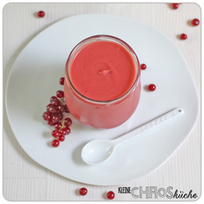 Zum Schluss noch den Johannisbeersaft dazu geben und alles mit einem Schneebesen gut verrühren.