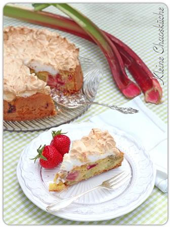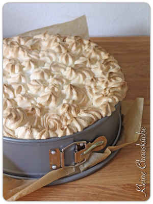 Den Kuchen nun weitere 20 Minuten in den Ofen schieben, diesmal auf der unteren Schiene damit die Baiser Masse nicht zu dunkel wird.